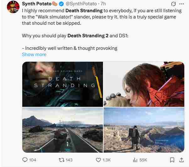 《死亡搁浅2》由小岛秀夫倾力打造,上市后备受赞誉。知名游戏推主Synth Potato近日发声,力挺这款作品,称其远非步行模拟器那么简单。他呼吁大家亲自体验,感受这款游戏的非凡魅力,错过它,你可能会后悔。