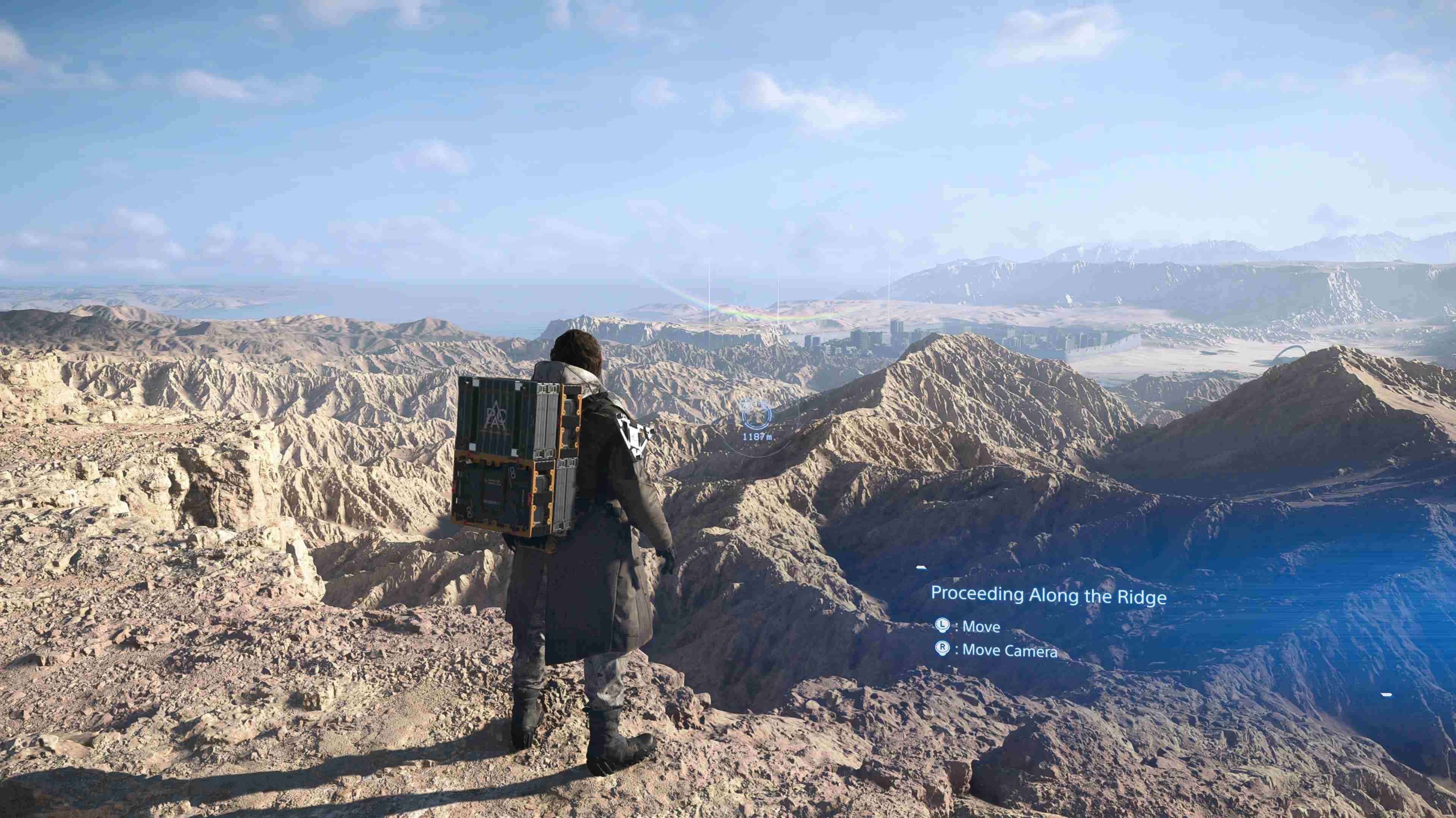 对于游戏玩法,《死亡搁浅》中的环游世界元素,这是游戏的核心。玩家需要规划路线,利用梯子、绳索、滑索等工具翻越山脉、丘陵和河流等障碍,完成包裹投递,并通过其他玩家建造的建筑与他们建立联系。这种互动和合作让整个旅程更像是一次社区行动,而在线功能使得这一过程更加有意义。