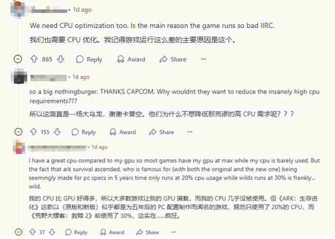 然而,这些改动并未能平息玩家们对游戏优化的不满。许多玩家在Reddit论坛上表示,游戏的卡顿问题主要来源于CPU优化不力,而非显存问题。有玩家质疑道:“他们什么时候才能解决CPU占用过高的问题?”另一名玩家则指出:“CPU优化才是关键,这才是导致游戏运行糟糕的根本原因。”