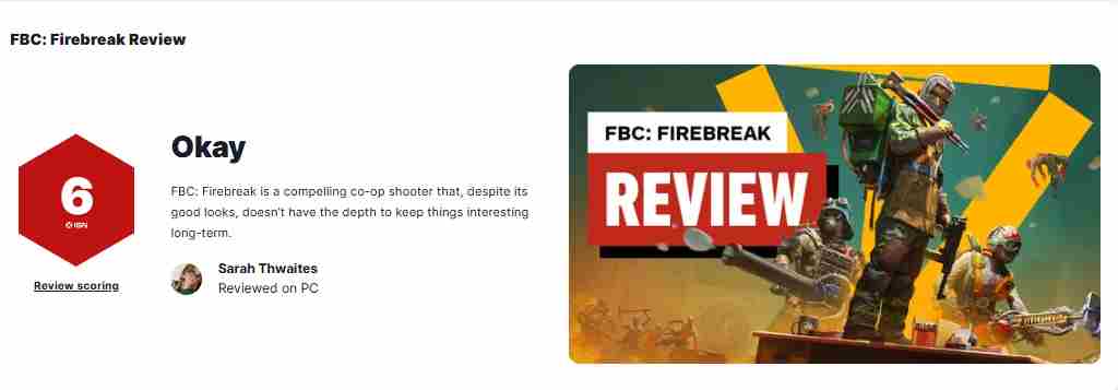 IGN简评:《FBC:防火线》是一款引人入胜的合作射击游戏,尽管画面精美,但缺乏足够的深度,难以长期保持玩家的兴趣。