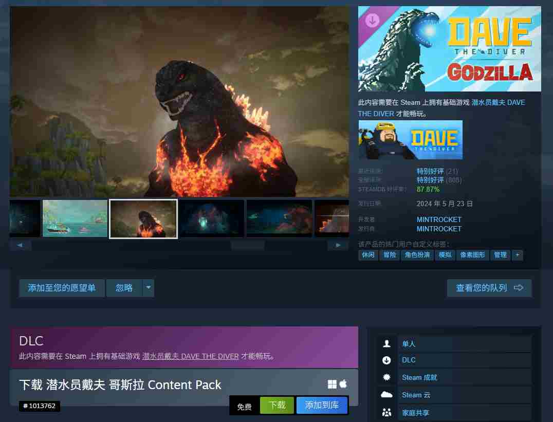 值此《潜水员戴夫(DAVE THE DIVER)》迎来两周年之际,游戏在Steam上推出史无前例的优惠活动,价格降至新低。与此同时,备受喜爱的哥斯拉免费DLC惊喜回归,让冒险之旅更加精彩。不容错过的机会,快来体验这场深海探险吧!