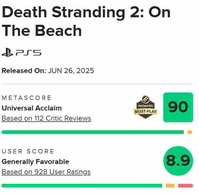 备受瞩目的《死亡搁浅2冥滩之上》自6月26日上市以来,在Metacritic平台上收获了众多玩家的热情评价。截至目前,已有928条评价涌入,其中高达89%的好评率以及8.9分的平均得分,充分证明了这款游戏的魅力所在。对于寻求独特游戏体验的你,不妨一试,或许它能给你带来前所未有的惊喜。