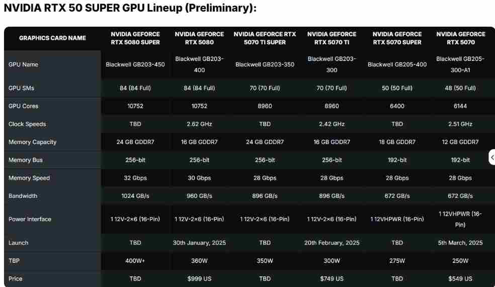 英伟达粉丝们有福了!据N卡知情人士Kopite透露,继RTX 40系显卡推出Super更新后,英伟达正筹备RTX 5080 Super、RTX 5070 Super以及全新的RTX 5070Ti Super。这款高性能显卡的升级,将为玩家带来更极致的游戏体验,敬请期待!