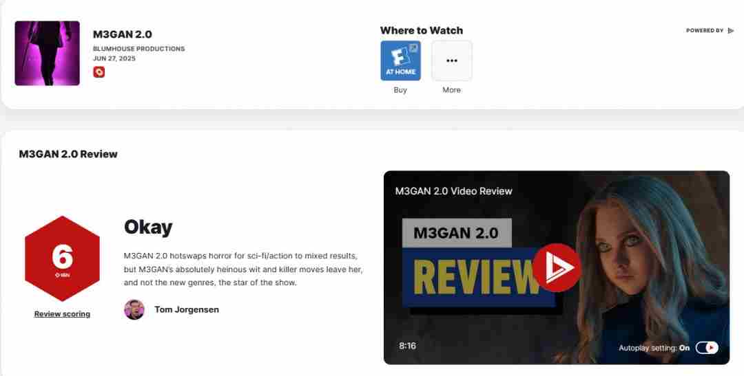 然而,和《F1:狂飙飞车》同一天(6.27)上映的另一部新片《梅根2.0》表现挣扎,全球首映票房仅1715.8万美元,较前作大幅下滑。