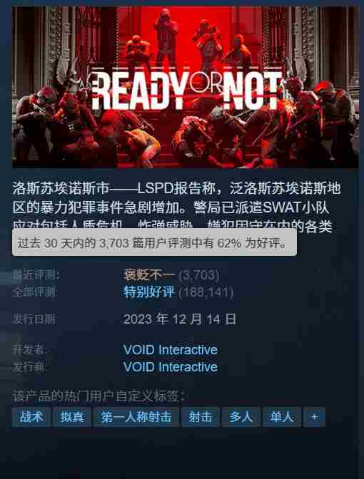 受此影响,《严阵以待》在Steam上的“近期评测”状态已降至“褒贬不一”。“差评轰炸”可能仍在持续,游戏的评价可能会进一步降低。