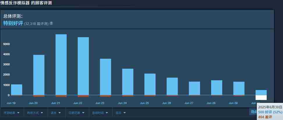 不过今天(6月30日)商店页面突然收到了400多条差评,截止至发稿时单日好评率为52%。根据玩家们的评论,这似乎与制作组近期的发言有关。