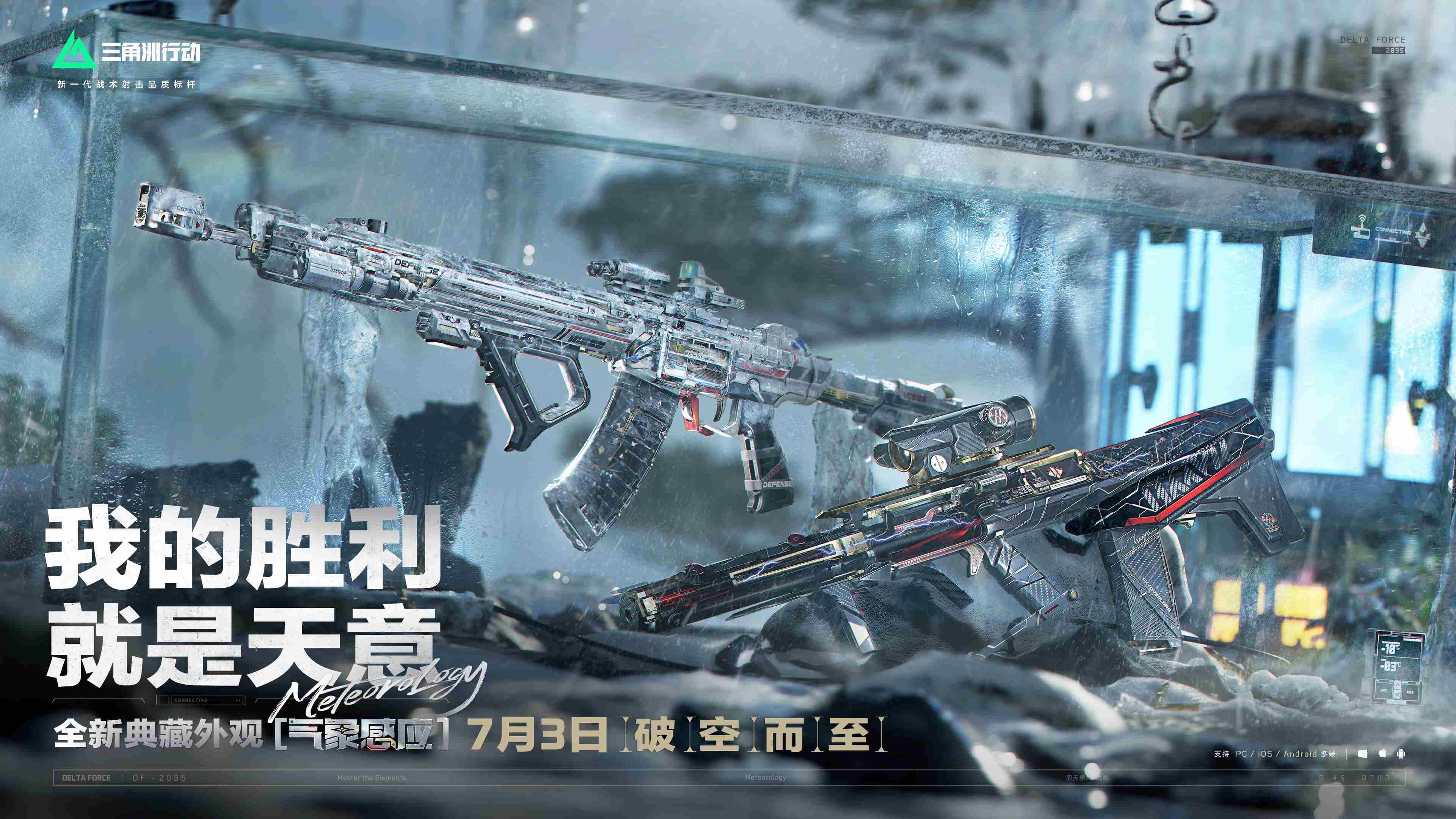 全新典藏外观-气象感应包含AUG突击步枪与腾龙突击步枪两款武器枪型,结合了极寒、炎热、酸雨、雷暴四种特殊气象设定,在检视时有独特天气变化效果,并搭配了检视语音及专属曳光弹设计。