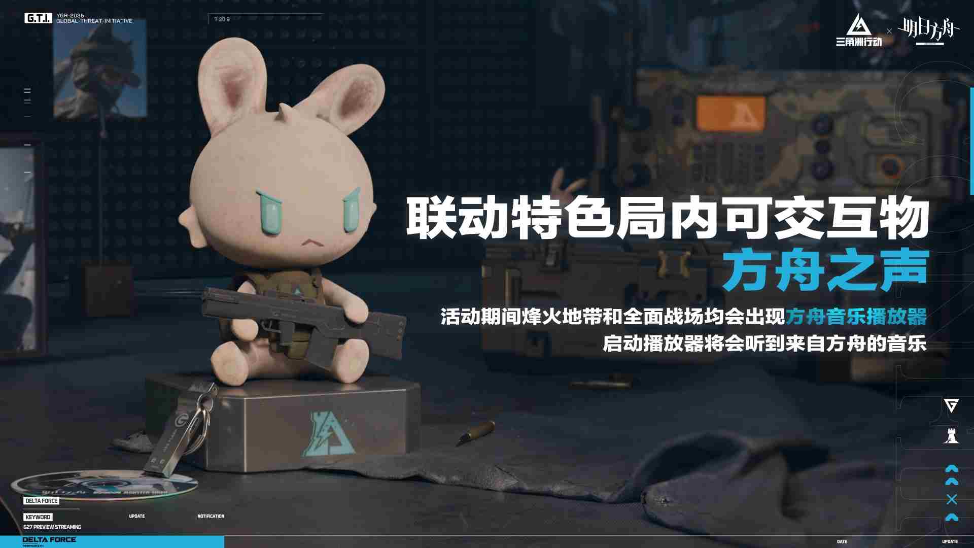 联动期间战场还增加了阿米娅兔兔形象的方舟音乐播放器,交互后将播放来自明日方舟的OST,为各位干员们的战局增添更多乐趣。