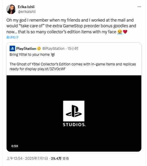 “天哪!我还记得我和朋友(以前)在商场工作时会额外‘照顾’Gamestop的预购奖励物品,而现在……这么多的收藏版周边都印着我的脸!”