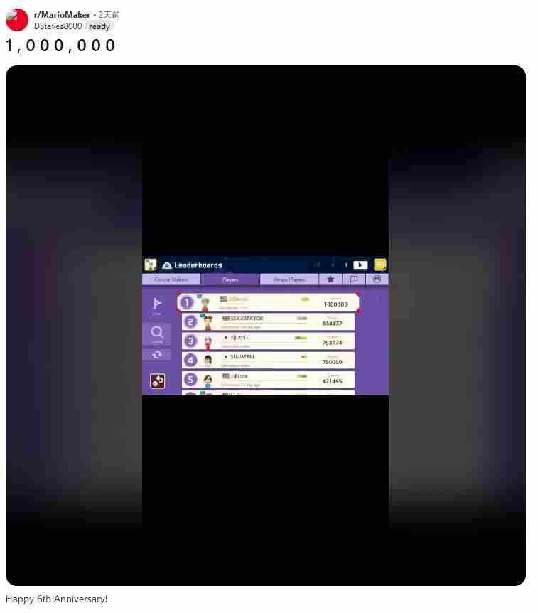 在游戏发售六周年之际,Twitch 与 YouTube 主播 @DSteves 成为首位达成“100 万关卡通关”的玩家。