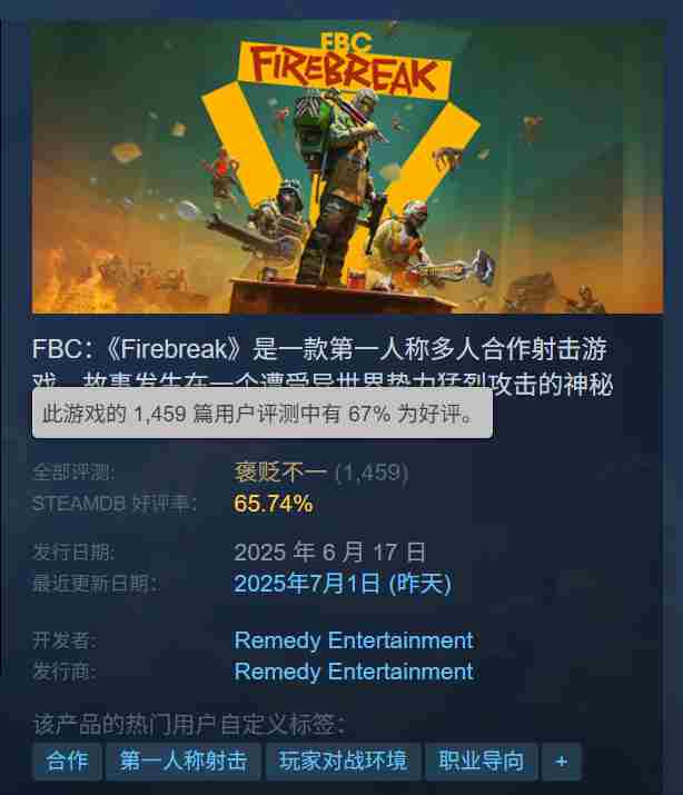 备受期待的Remedy新作《FBC: Firebreak》于6月17日揭开面纱。尽管官方宣布玩家数量突破百万大关,但游戏的市场反馈却远低于预期,呈现出一种叫好不叫座的局面。