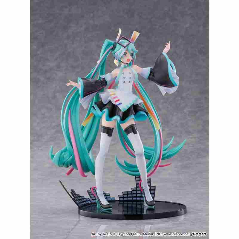 在造型设计上,该模型展现了初音未来经典的歌手造型,搭配了丰富的细节和色彩。模型的服装设计灵感来源于初音未来的历次演出服,特别是在色彩搭配和服装细节上,都尽可能还原她在舞台上的光彩夺目。此外,模型的动态姿势展现了角色在舞台上激情演出的瞬间,使得整个模型更加生动、充满活力。这样的设计非常契合庆祝10周年的主题,为粉丝们提供了一个能够纪念和珍藏初音未来10年历程的实物载体。