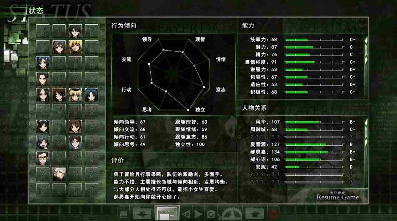 在游戏中,玩家所做的每次选择都会被游戏所记录,通过游戏中一个类似MBTI性格测试的内置系统,游戏将把玩家的行为倾向细化成多种类别,同时换算成玩家角色的属性加值。