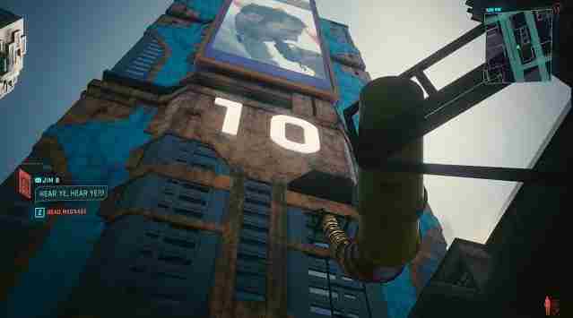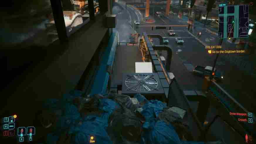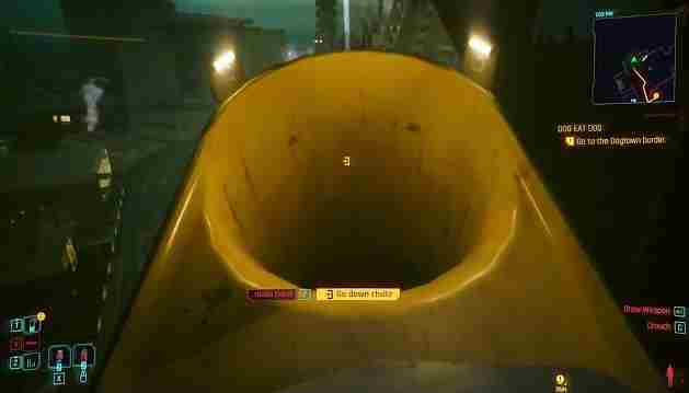 现在V可以不用再乘坐牢笼般的电梯,而是通过与滑道互动触发无缝动画,仅需7秒就能直接滑到地面(严格来说是底层基础设施屋顶的垃圾场)。