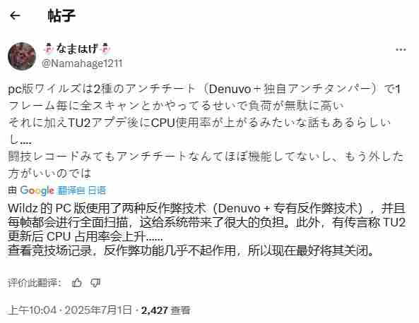 第二弹更新后,原本存在的性能问题进一步加剧。日本玩家测试发现,游戏在后台运行时,反作弊系统会对每一帧画面进行实时检测,导致CPU使用率异常升高,长期运行甚至可能损害硬件。即便降低画质设置,由于反作弊系统的持续检测,性能提升效果也十分有限。