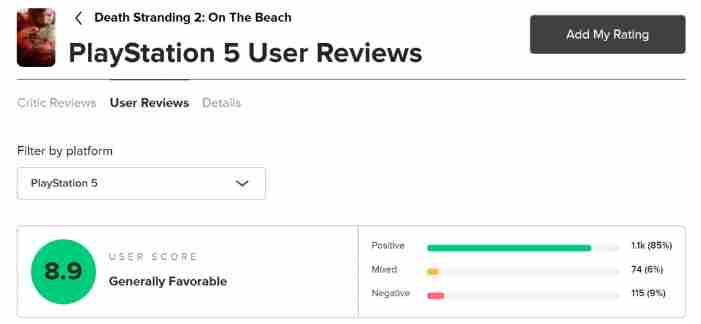 作为小岛秀夫忠实粉丝为主的早期购买群体,如此优异的评分表现实属意料之中。
