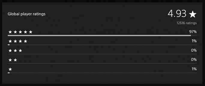 目前该作稳居PSN平台评分榜首,其中97%的玩家给予满分评价。