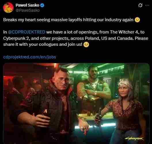 CDPR游戏总监Pawel Sasko近日在社交媒体发布招聘信息,公开了美国、加拿大及波兰地区的职位空缺。尽管无法吸纳所有被裁员工,在当前行业普遍收缩的背景下,CDPR的逆势招聘举措仍获业界好评。