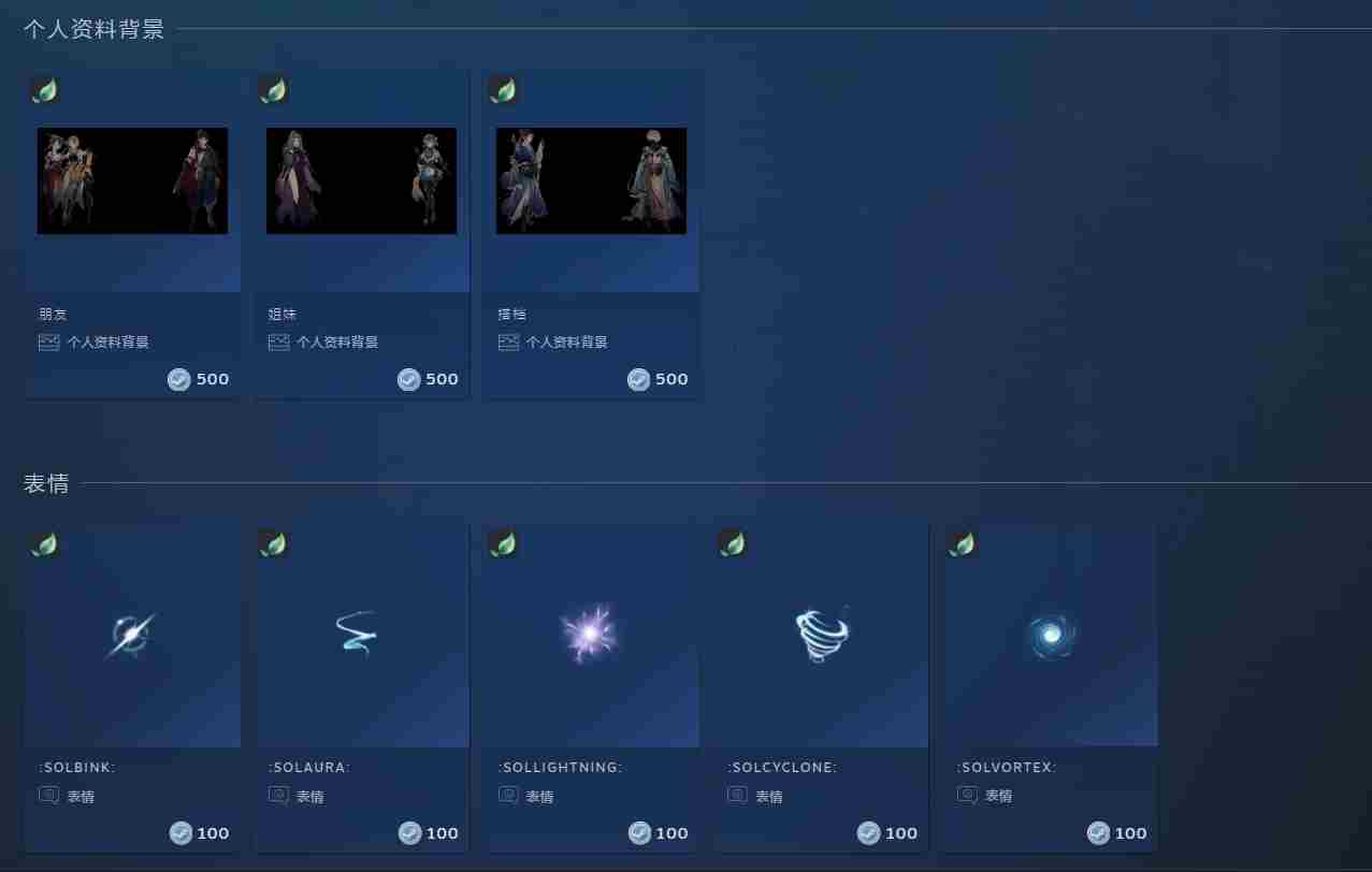 在游玩过程中,玩家将随机获得卡牌掉落,通过收集或与他人交易集齐6张卡牌,即可合成《浮生游歌》的专属徽章,并且能获得个人资料背景、表情等特殊奖励!此外,你也可以在steam点数商店中消耗点数直接购买。