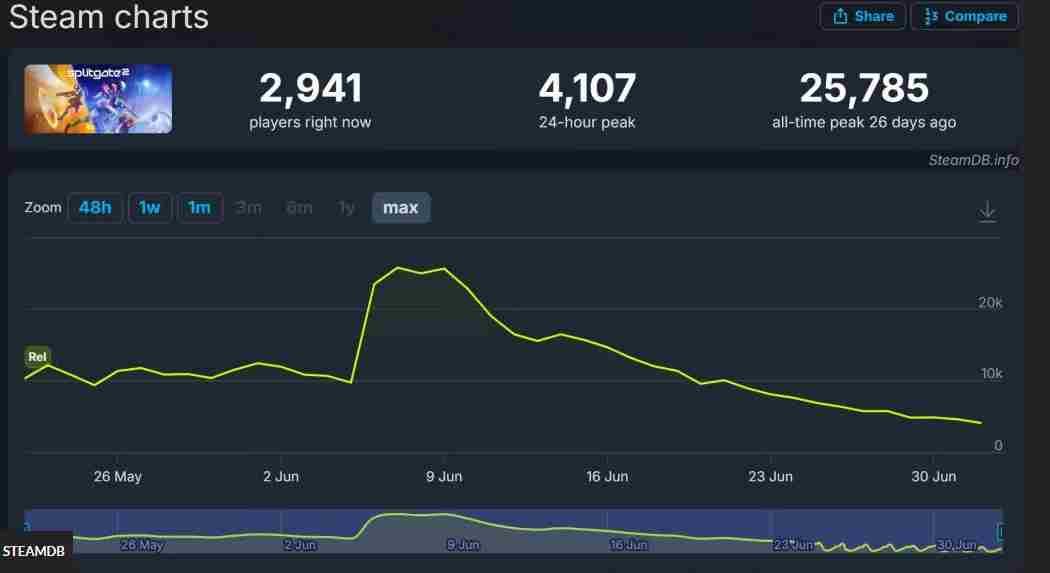 《分裂之门2》承载着发行商复兴FPS的厚望,却未能在市场上站稳脚跟。仅仅一个月后,活跃玩家数量骤降至巅峰时期的1/5,玩家流失问题凸显,形势令人担忧。