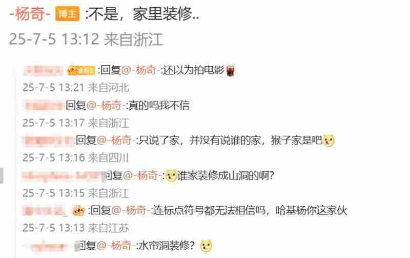 对此,杨奇在评论区澄清:"并非取材,家中装修..."但这一解释显然未能说服网友:"谁家装修成山洞的啊?"
