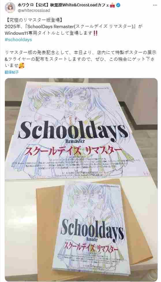 为配合复刻版发布,官方将在秋葉原White&CrossLoad女仆咖啡厅举办限定活动,到场玩家可获赠纪念海报。