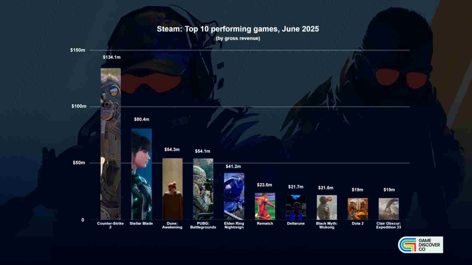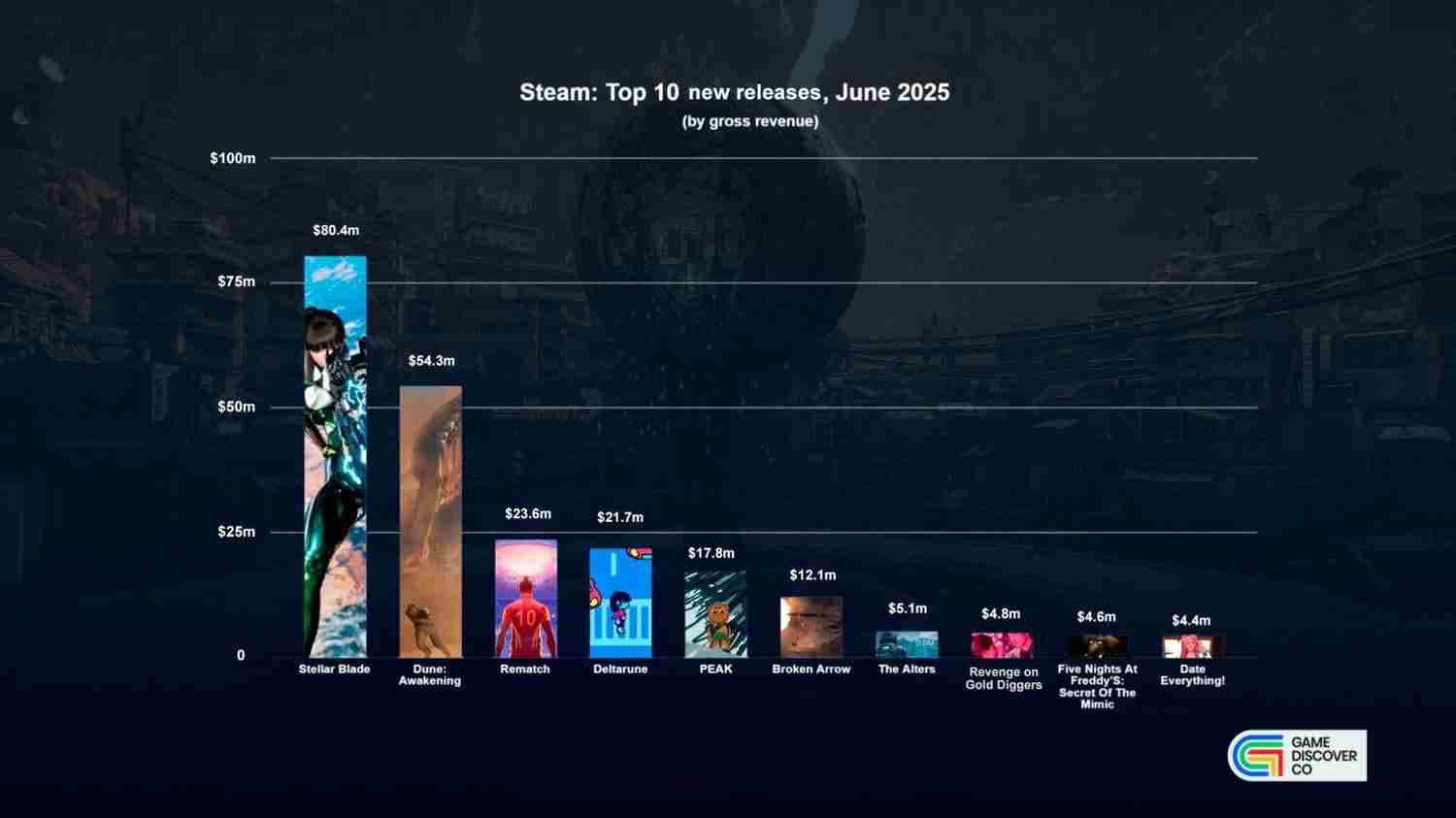 GameDiscoverCo还公布了6月整体最赚钱游戏榜(包括所有作品)