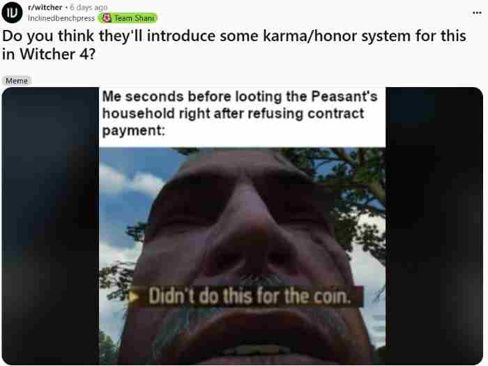 然而,当前游戏机制中玩家对角色声誉的塑造空间相当有限。除了在任务报酬谈判时能稍显个性外,大多数选择都服务于主线叙事。随着《巫师4》开发消息的公布,Reddit社区发起了关于是否引入声誉系统的热烈讨论,相关帖子已收获超过2000个赞。支持派玩家指出,《巫师3》中无节制的搜刮行为严重破坏了角色扮演的沉浸感。他们建议参考《天国:拯救2》的区域声望机制,让NPC对玩家的偷窃等行为做出合理反应。